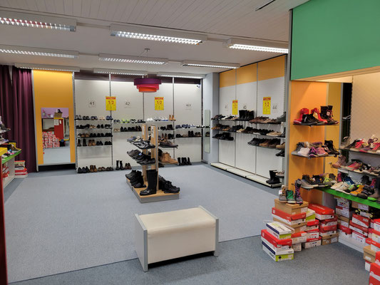 Die renovierte Ladenfläche gliedert sich in drei miteinander durch Treppen verbundenen Ebenen. Im Eingangs- und Passagenbereich sowie im südlichen, hinteren Teil ist Teppichboden verlegt, im mittleren Bereich schwarzer Kunststoffboden und im hinteren, südwestlichen Ladenbereich befindet sich Linoleum. Im WC sind Fliesen in Parkettoptik verlegt.